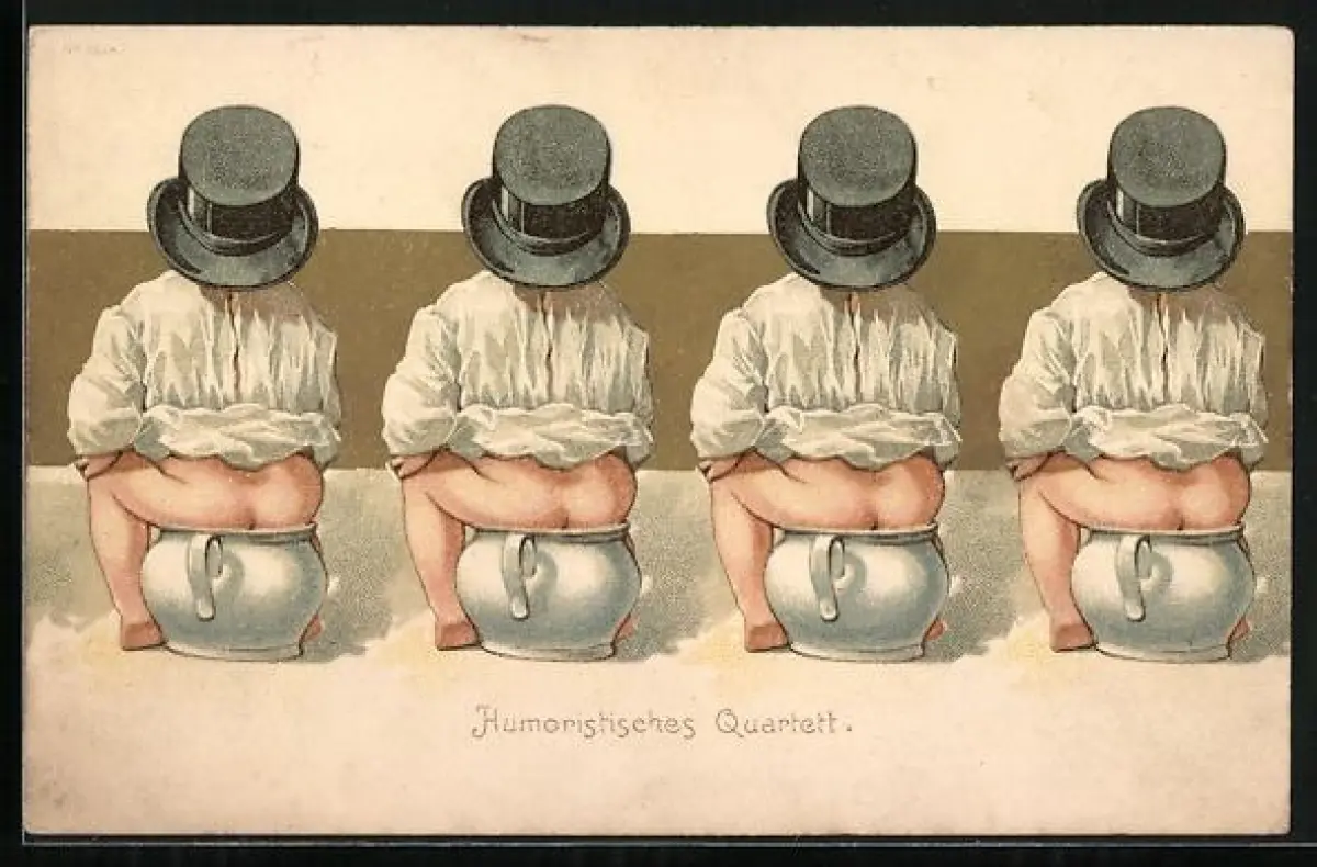 AK Rückenansicht von vier Kindern auf Nachttöpfen, Toilettenhumor