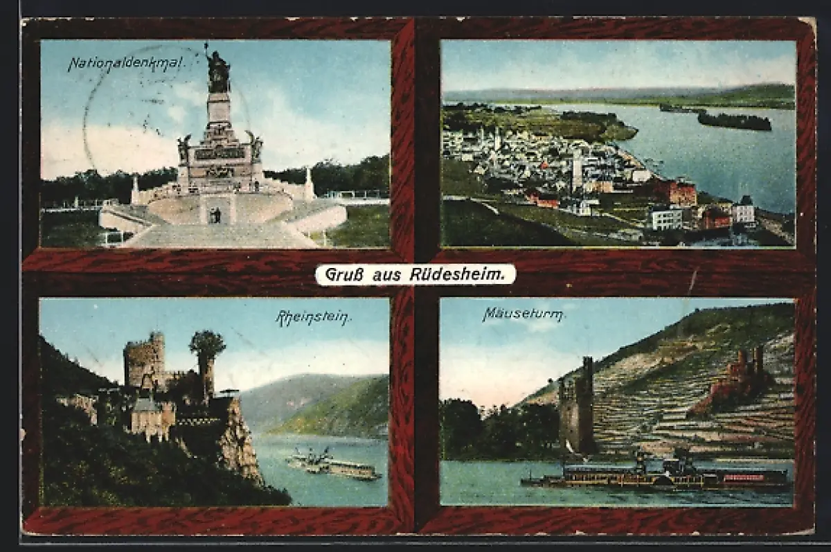 AK Rüdesheim / Rhein, Nationaldenkmal, Rheinstein, Mäuseturm