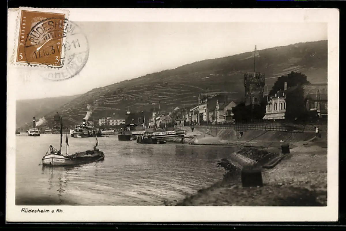 AK Rüdesheim a. Rh., Rheinpromenade, Hafen, Mäuseturm