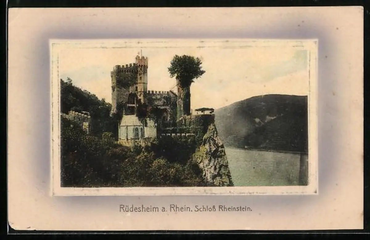 AK Rüdesheim a. Rhein, Schloss Rheinstein mit Umgebung