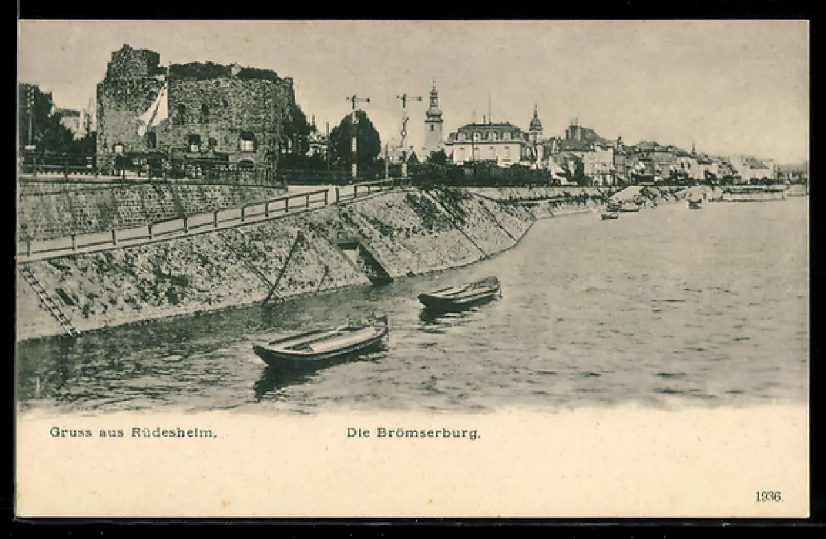 AK Rüdesheim am Rhein, Brömserburg am Flussufer
