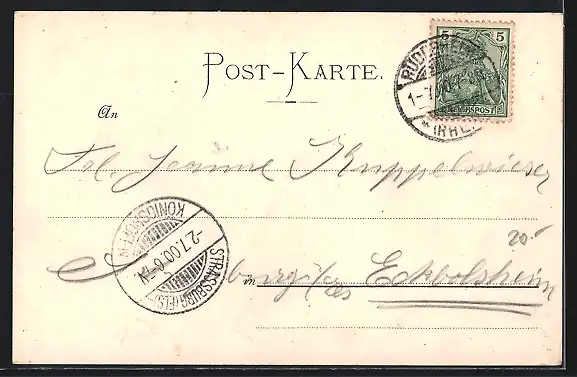 alte Ansichtskarte, gelaufen 1900, guter Zustand