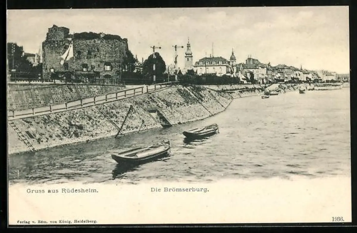AK Rüdesheim am Rhein, Uferpartie mit Brömserburg