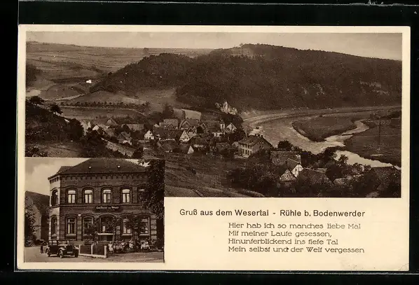 AK Rühle b. Bodenwerder, Gast- und Pensionshaus zur Weser, Bes. L. Warnecke, Panorama