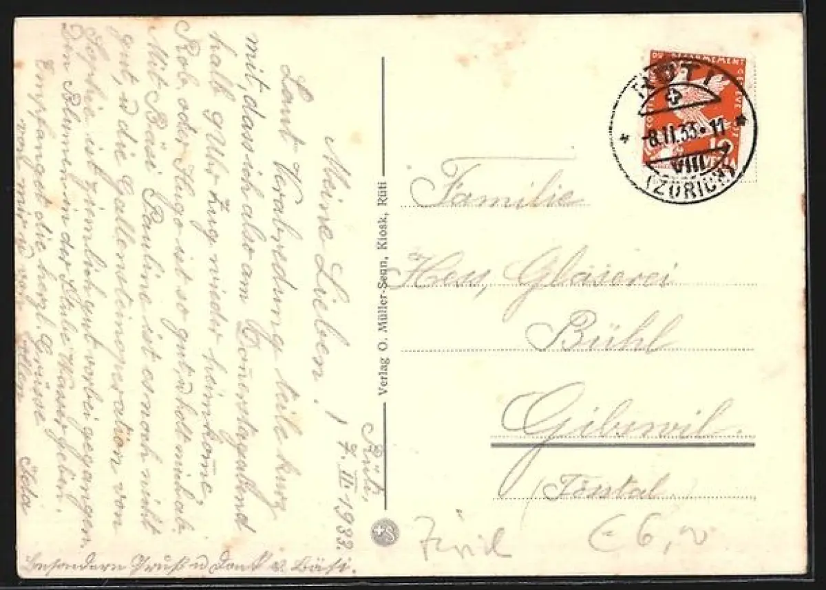 gelaufen 1933, Bugspur li. oben, guter Zustand