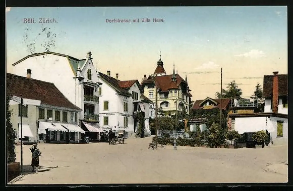 AK Rüti /ZH, Dorfstrasse mit Villa Hess