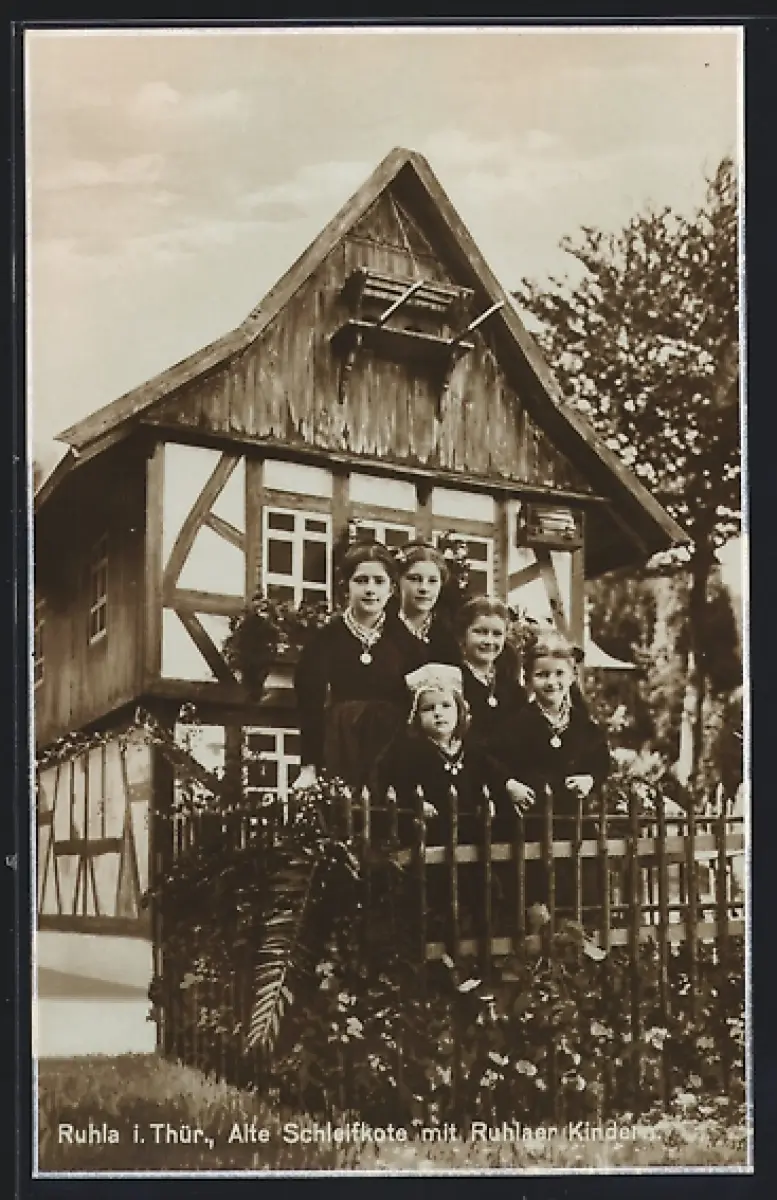 AK Ruhla, Alte Schleifkote mit Ruhlaer Kindern
