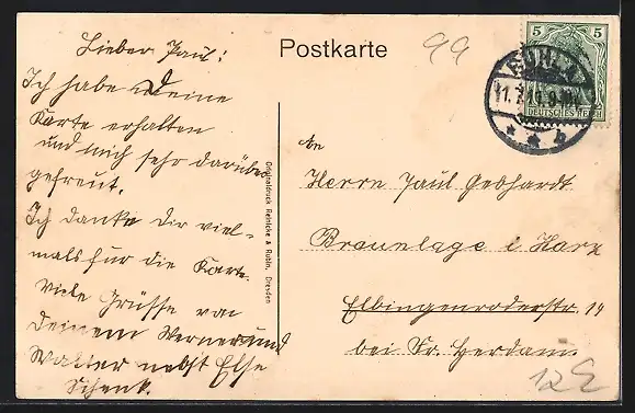 alte Ansichtskarte, gelaufen, Stempelspur, guter Zustand