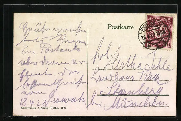 alte Ansichtskarte, gelaufen 1922, Oberflächenschaden re. unten, guter Zustand