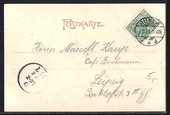 alte Ansichtskarte, gelaufen 1901, guter Zustand