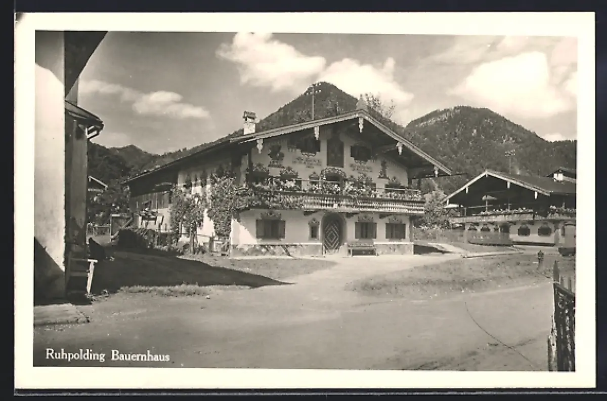 AK Ruhpolding, Strassenpartie am Bauernhaus