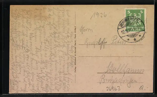 alte Ansichtskarte, gelaufen 1926, guter Zustand