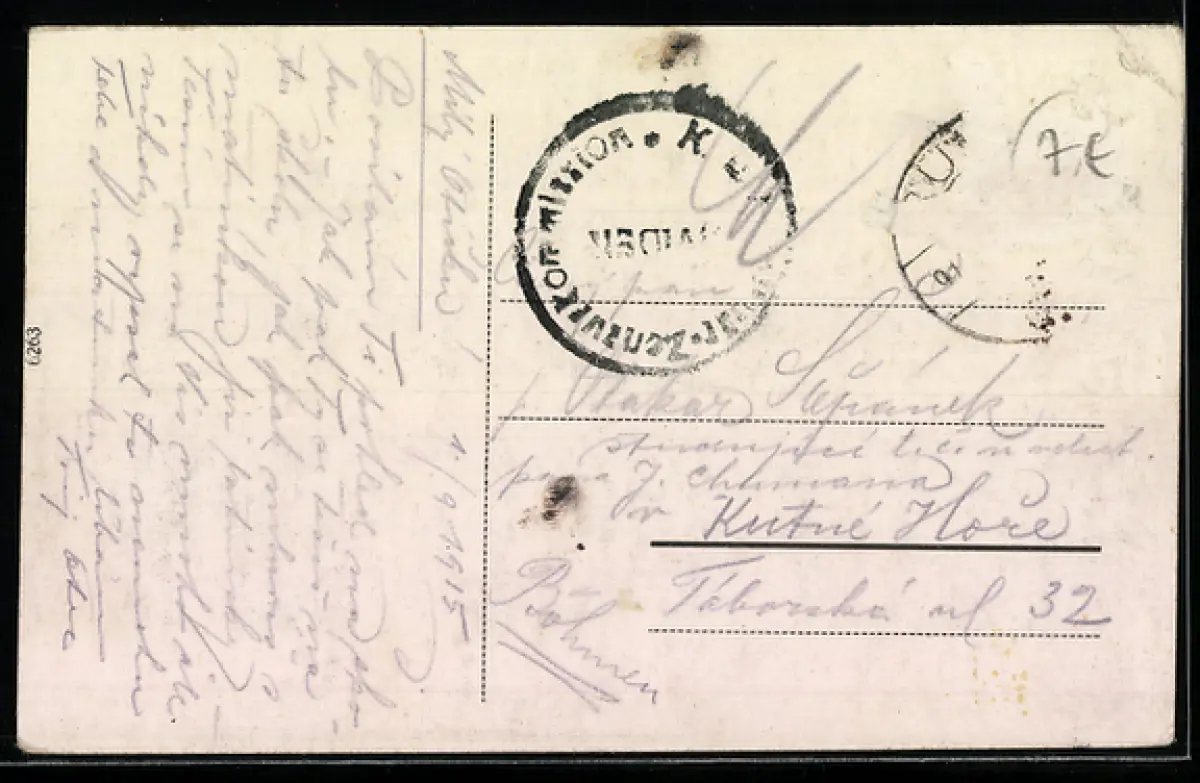 alte Ansichtskarte, gelaufen, Briefmarke entfernt, Stempelspur, Eckknick oben links, guter Zustand