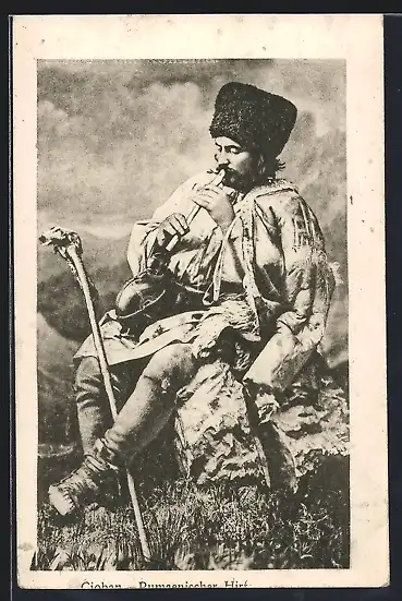 AK Rumänischer Hirte in Volkstracht beim Musizieren