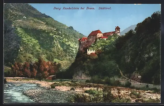 AK Runkelstein, Flusspartie mit Burg Runkelstein