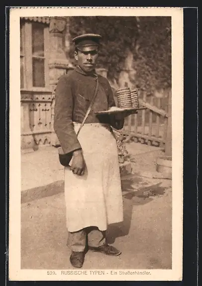 AK Russischer Strassenhändler mit Gebäck auf einem Tablett