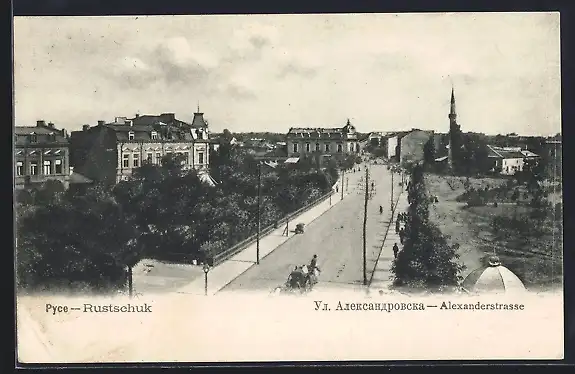 AK Rustschuk, Alexanderstrasse aus der Vogelschau