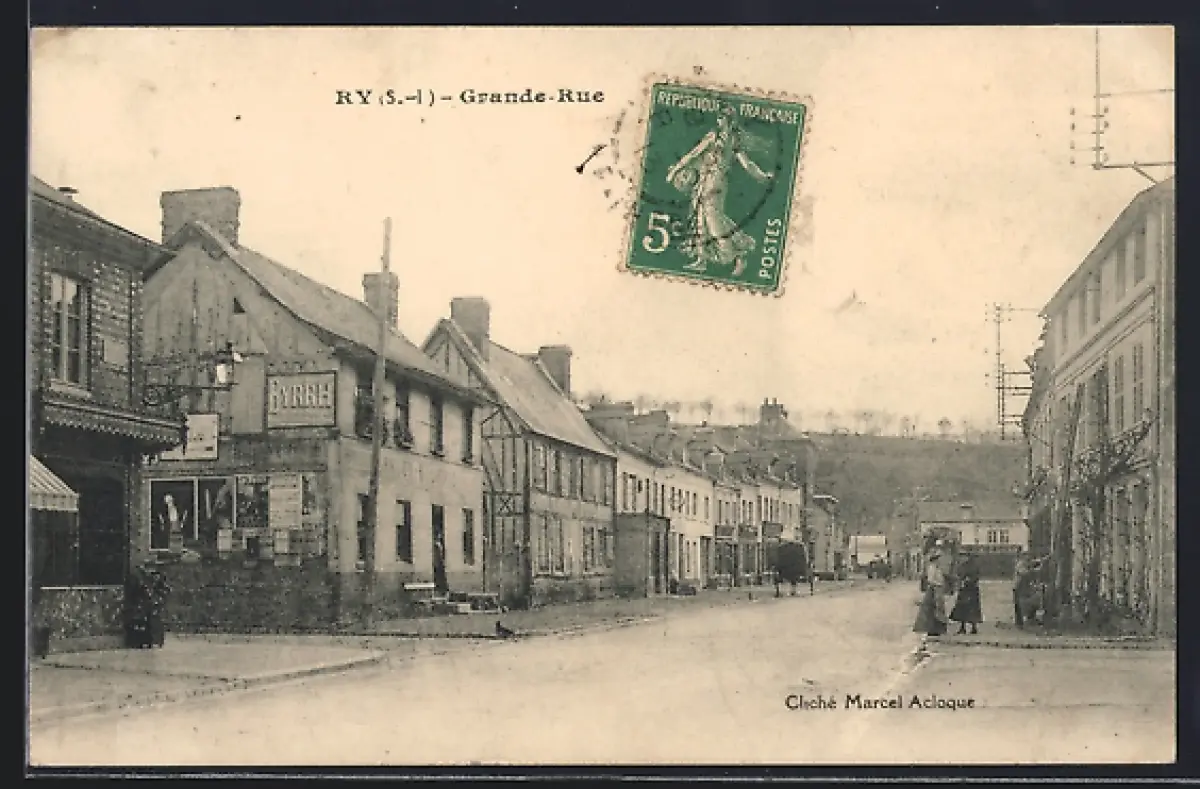 AK Ry /S.-I., Grande-Rue animée avec bâtiments et passants