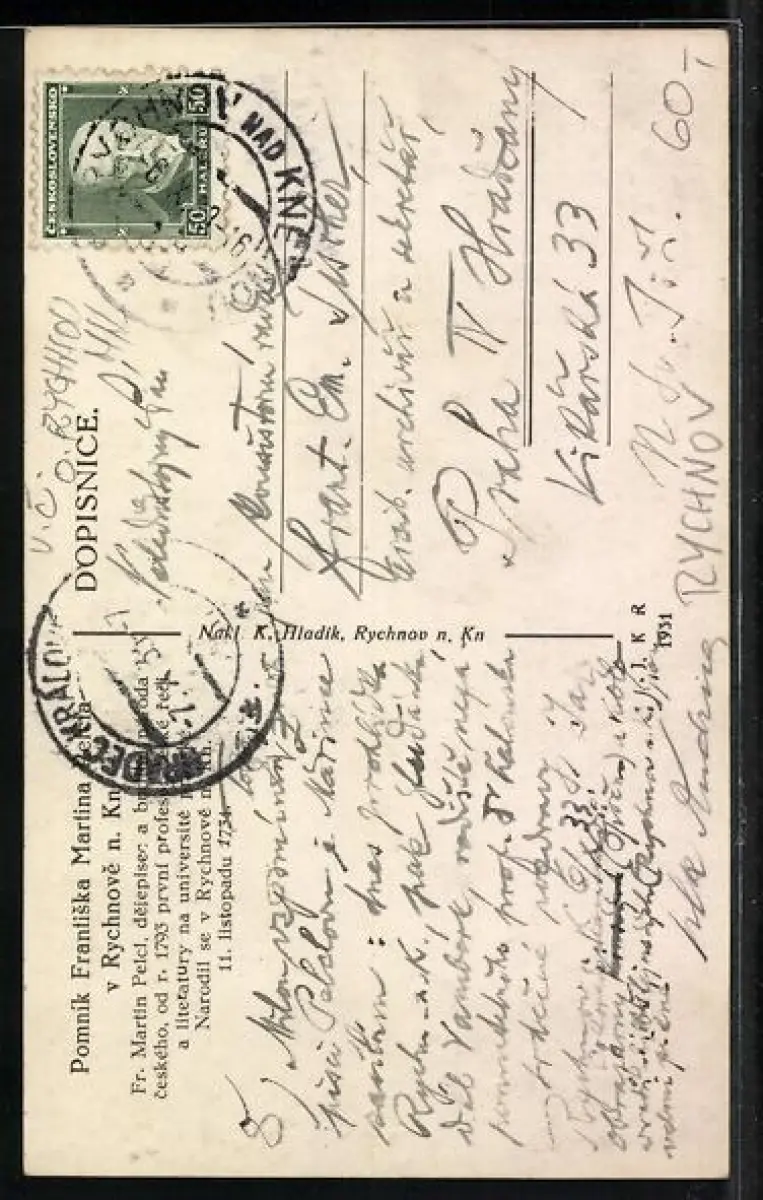 AK Rychnov, Pomnik Frantiska Martina Pelcla
