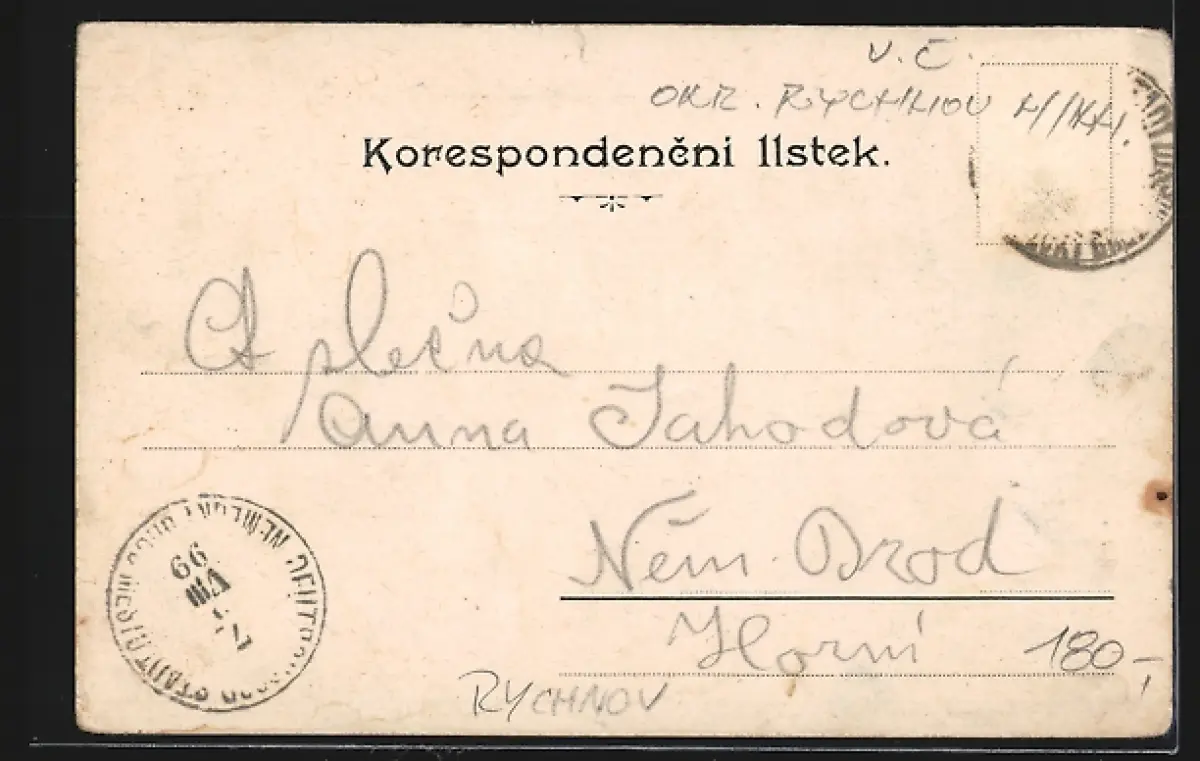 gelaufen 1899, Briefmarke entfernt, kl. Einriss oben re., Eckknick u. Abriebspur unten re., guter Zustand