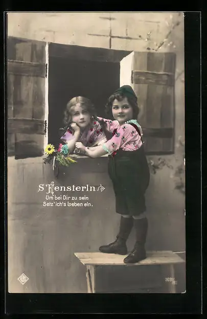 AK S`Fensterln, Um bei Dir zu sein..., Junge mit einem Mädchen, Erotik
