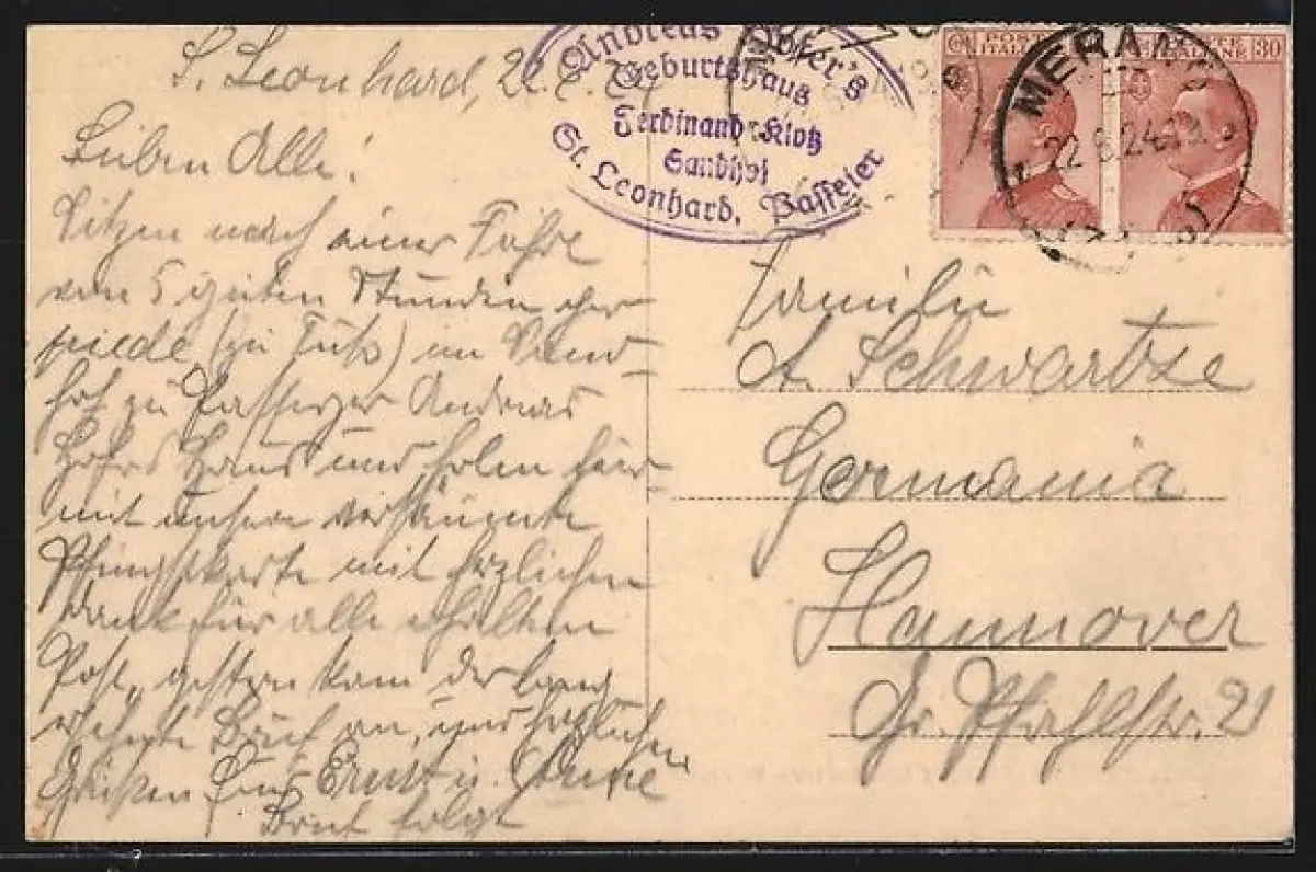 AK S. Leonardo i Passiria, Casa Nativa di Andrea Hofer