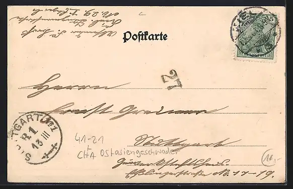 alte Ansichtskarte, gelaufen 1901, guter Zustand