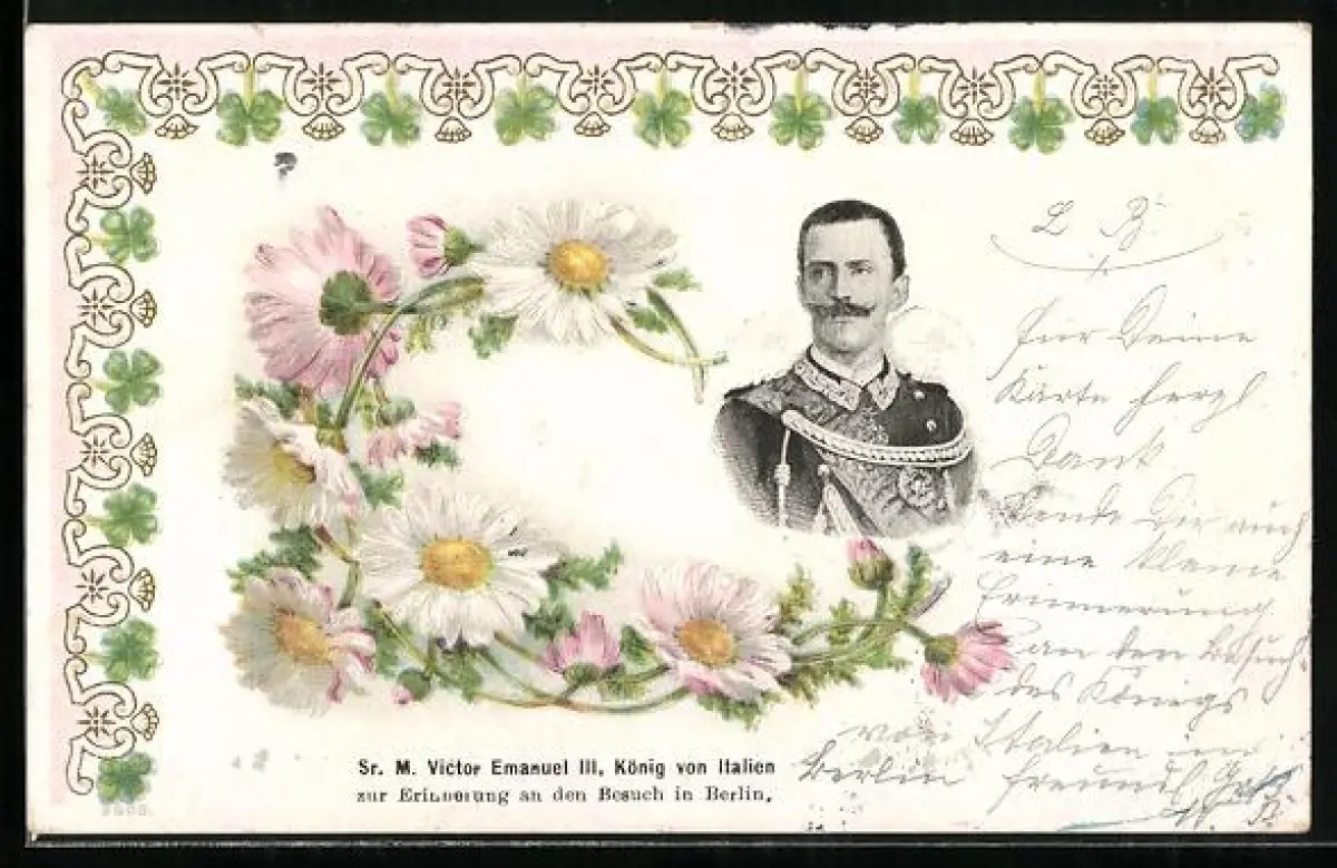AK S. M. Victor Emanuel III., König von Italien, Blumen