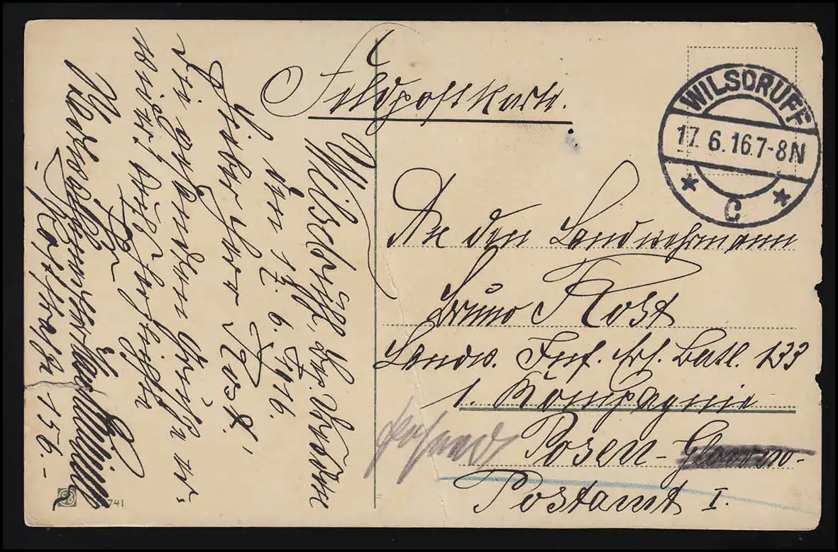 AK SB 2741 Lorbeerzweig, Gehorsam, Treue Tapferkeit Feldpost WILSDRUFF 17.6.16