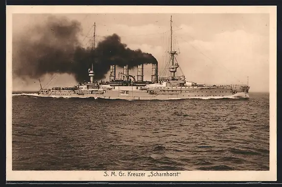 AK SM Gr. Kreuzer Scharnhorst des Ostasiengeschwaders in voller Fahrt