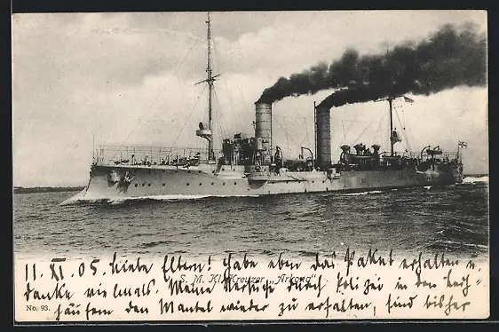 AK SM Kl. Kreuzer Arkona vom Ostasiengeschwader unter Volldampf
