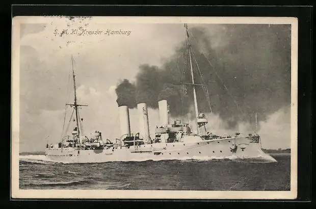 AK SM Kleiner Kreuzer Hamburg gibt Volldampf