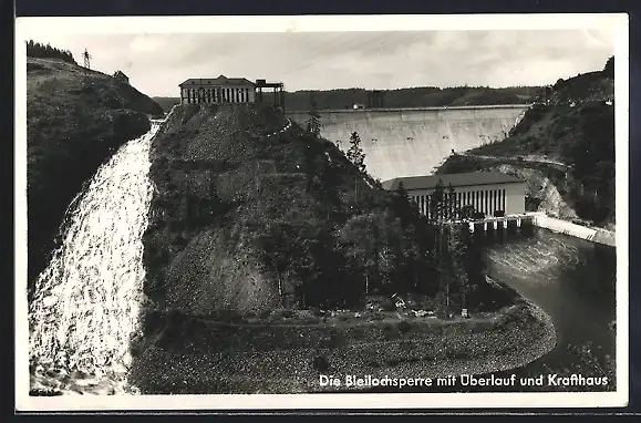 AK Saalburg, Die Bleilochsperre mit Überlauf und Krafthaus