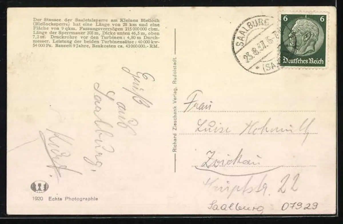 AK Saalburg / Saale, Saaletalsperre am Kl. Bleiloch, Stausee, Sperrmauer mit Kraftwerk