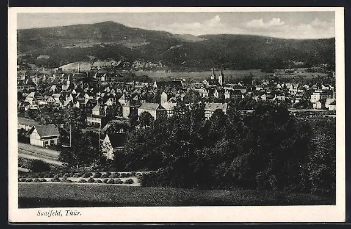 AK Saalfeld /Thür., Ortsansicht aus der Vogelschau