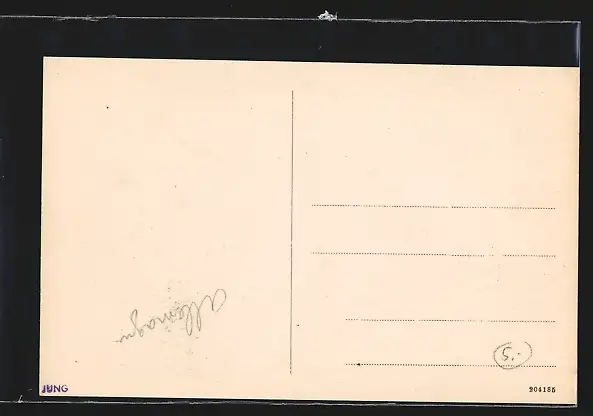 Personenbezogene Daten auf der Rückseite der Karte wurden durch blauen Textmarker unkenntlich gemacht. Die blauen Stellen sind auf die Vorderseite durchgeweicht und wirken sich negativ auf das Postkartenfoto aus