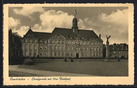 AK Saarbrücken, Landgericht mit 70er Denkmal