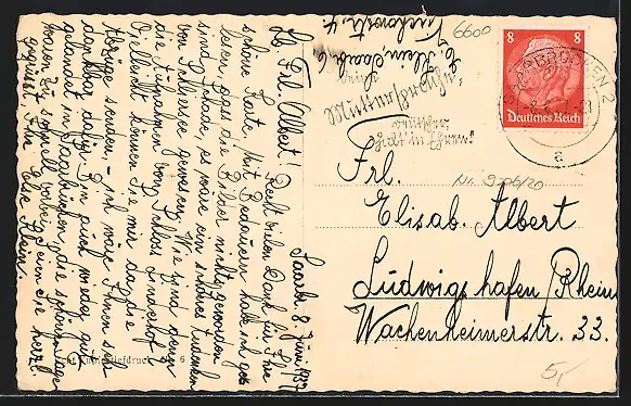 alte Ansichtskarte, gelaufen 1937, guter Zustand