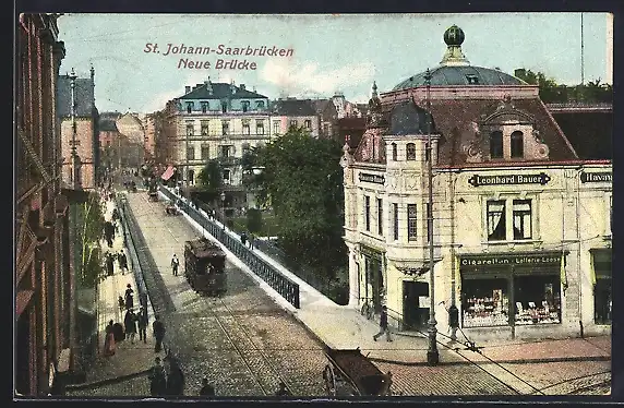 AK Saarbrücken, Neue Brücke, Viktoriastrasse, Strassenbahn