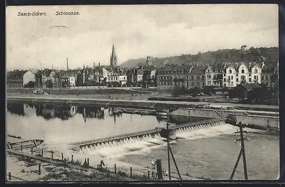 AK Saarbrücken, Ortsansicht mit Schleuse