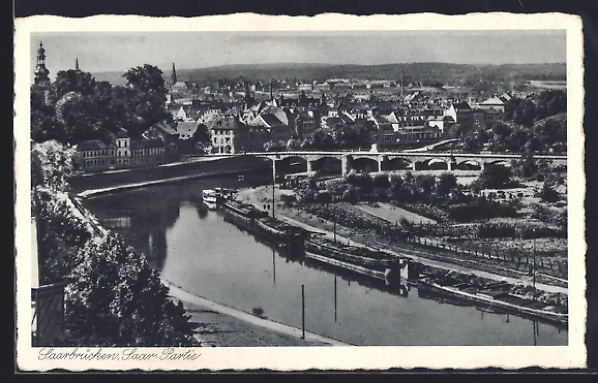 AK Saarbrücken, Saar-Partie mit Brücke