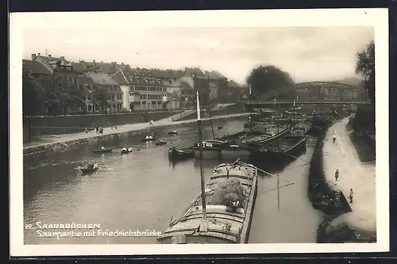 AK Saarbrücken, Saarpartie mit Friedrichsbrücke