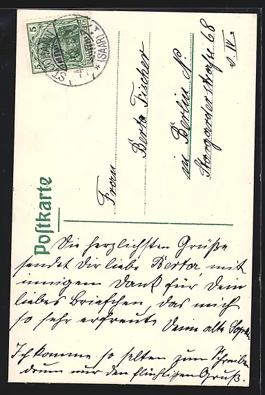 alte Ansichtskarte, gelaufen 1908, Stempelspur, guter Zustand