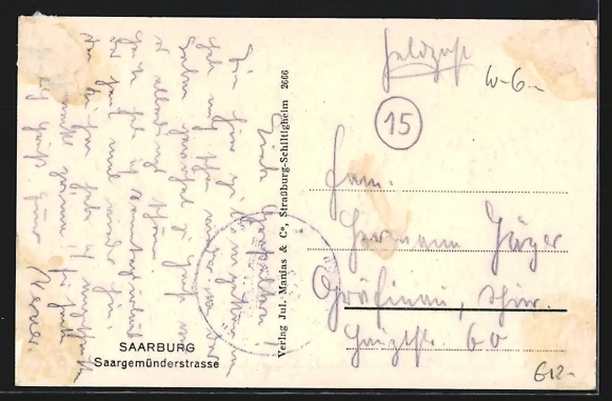 AK Saarburg, Saargemünderstrasse mit Geschäft