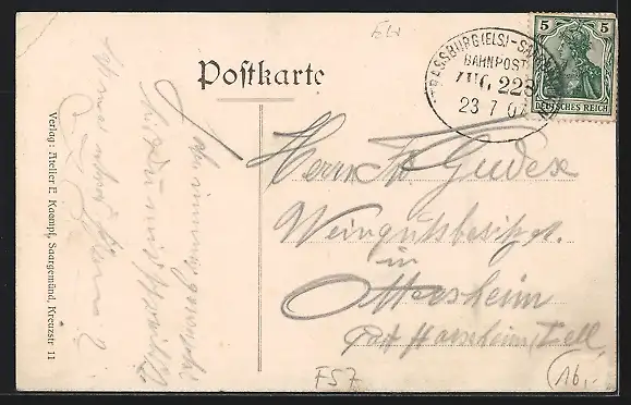 alte Ansichtskarte, gelaufen 1907, Eckknick re. oben, guter Zustand