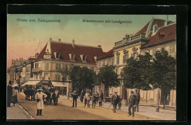 AK Saargemünd, Kreuzstrasse mit Landgericht