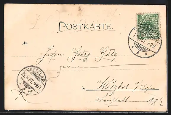 alte Ansichtskarte, gelaufen 1897, guter Zustand