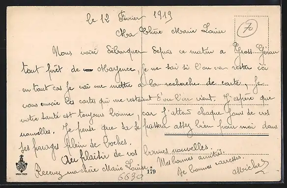 Personenbezogene Daten auf der Rückseite der Karte wurden durch blauen Textmarker unkenntlich gemacht. Die blauen Stellen sind auf die Vorderseite durchgeweicht und wirken sich negativ auf das Postkartenfoto aus