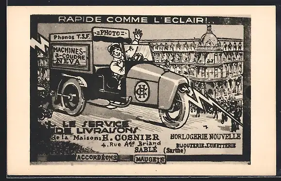 AK Sablé, Rapide Comme l'Eclair!, le Service de Livraisons de la Maison H. Cosnier, Horlogerie Nouvelle