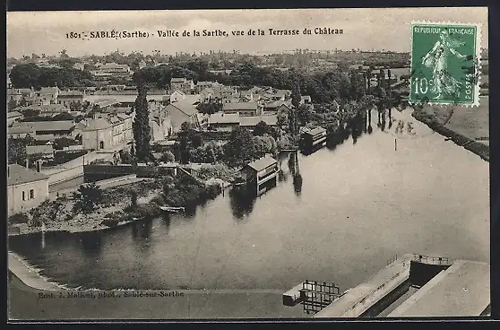 AK Sablé-sur-Sarthe, Vallée de la Sarthe vue de la terrasse du château
